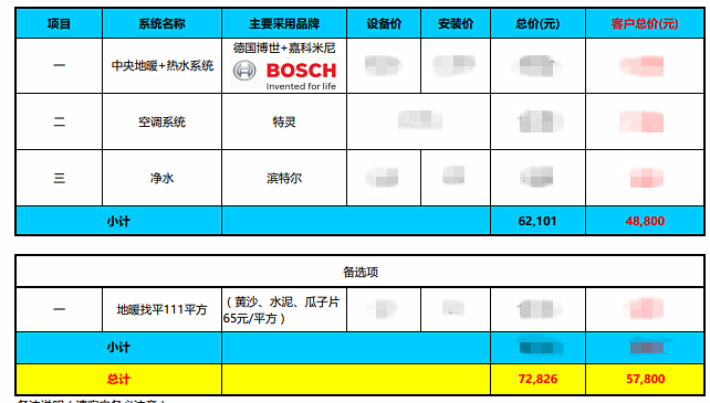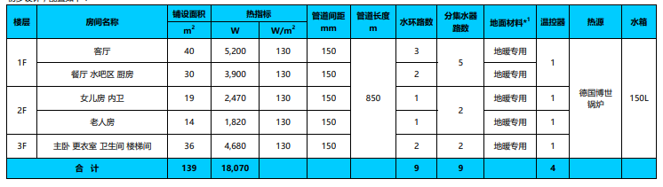 家居集成系統:特靈中央空調系統    博世歐洲之星鍋爐   嘉科米尼地暖管路系統    濱特爾中央水處理  威樂循環泵
