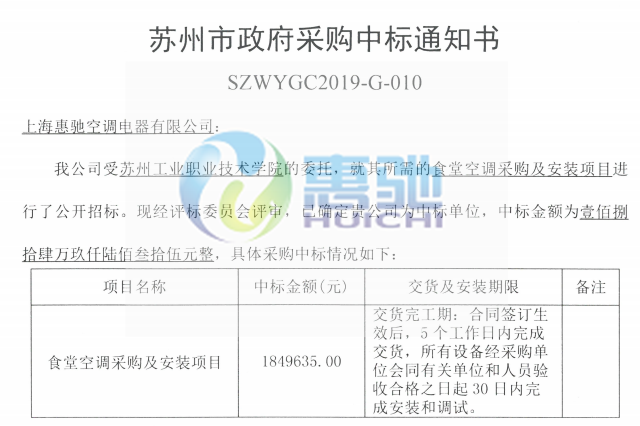 項目名稱:蘇州工業(yè)職業(yè)技術學院-食堂空調系統(tǒng)項目