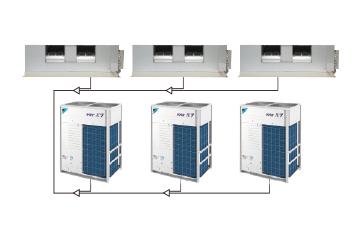 針對高挑空大堂、機場、電影院、大型商場、體育館等大型挑空空間,全新研發VRV大空間用系列,單套系統最高制冷量大60匹,最高機外靜壓高達550pa*以滿足大型空間對于空調系統大風量、高靜壓的需求。