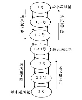 中央空調節能改造系統要考慮風機的運行控制方式,即應使每臺風機的運行時間盡量均衡。另外,控制器應簡單有效,設計時能考慮各種特殊情況,具有一定的抗干擾及應變能力。