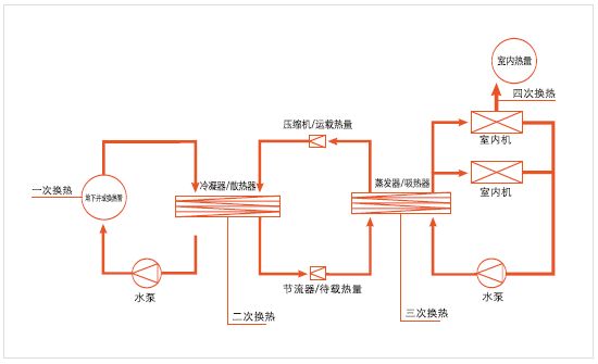 室外機一般稱為冷熱水機組,室內(nèi)機一般稱為風機盤管,通過水管連接。室外機組產(chǎn)生冷/熱水,用水泵送入每個室內(nèi)機,室內(nèi)空氣與水換熱達到溫度調(diào)節(jié)的目的。