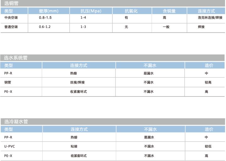 管材的選擇要求不泄露、耐高壓、價格適中。