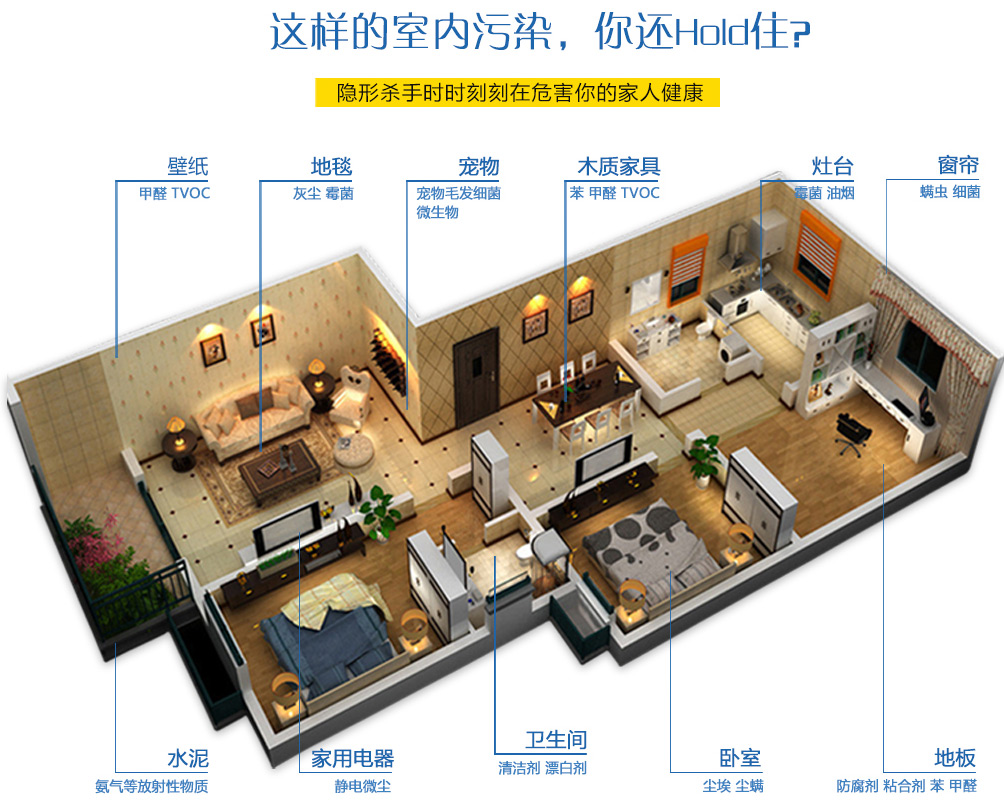 3、清除室內(nèi)裝飾后留下的甲醛、苯等有害物質(zhì)。