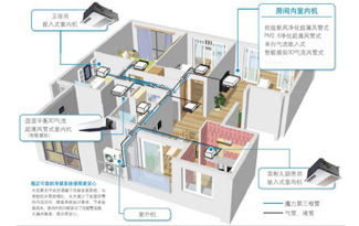 03 全空間對應 全效家用中央空調已經克服了以往傳統空調不能安裝在廚房、衛生間、衣帽間、地下室等油污、潮濕空間的難題。